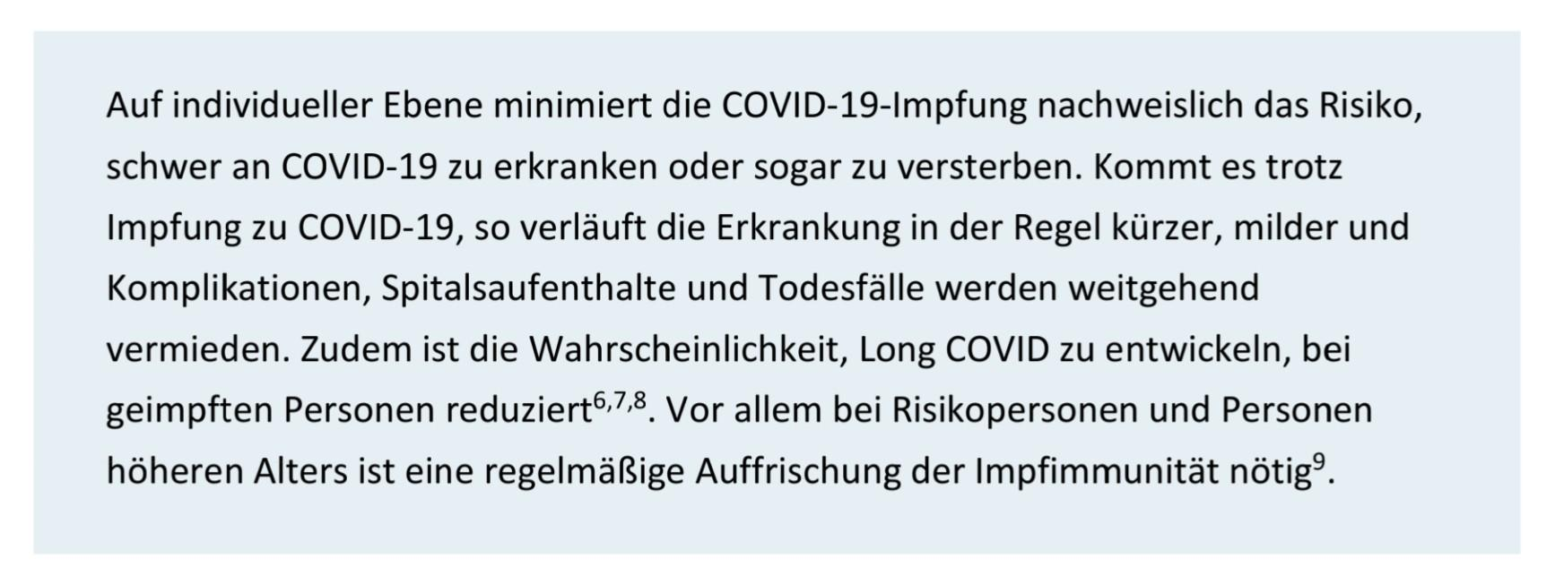- In den meisten nationalen Impfempfehlungen wird Long Covid gar nicht erwähnt, COVID-Impfungen für Kinder und Jugendliche sind in der Regel nicht mehr vorgesehen. (Österreich ist da eine der Ausnahmen).
